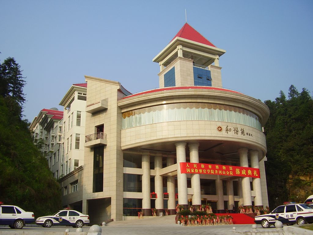 人民檢察博物館、國家檢察官學(xué)院井岡山分院(和諧苑)位于井岡山茨坪長(cháng)坑路10號,于2007年9月12日正營(yíng)業(yè),背臨五指峰,面積約100畝,建筑面積約1.7萬(wàn)平方米。    四樓人民檢察博物館是由最高人民檢察院主辦、江西省人民檢察院承辦的全國唯一的檢察主題博物館。849平方米的主體展廳,珍藏和陳列有人民檢察制度自1931年在江西瑞金誕生以來(lái)各個(gè)時(shí)期的珍貴歷史文物。通過(guò)翔實(shí)、準確的史料,系統地展現了人民檢察七十多年的風(fēng)雨歷程。450平方米的陽(yáng)光大堂陳列了“人民檢察第一門(mén)”和建國以來(lái)最高人民檢察院歷任檢察長(cháng)的瓷版畫(huà)像。    和諧苑有多功能會(huì )議廳一個(gè),可容納400人開(kāi)會(huì );多媒體教室兩個(gè),可容納160人授課;中型會(huì )議室兩個(gè),可容納60人討論學(xué)習;電子閱覽室一個(gè),可容納26人查閱資料,是培訓開(kāi)會(huì )的首選場(chǎng)地。    和諧苑有各種房間137間,其中豪華套2間、復式套5間、商務(wù)套4間、單間23間、標間103間,房?jì)仍O施設備均按四星標準配置。    餐廳設豪華包廂7間,大宴會(huì )廳可容納400余人聚餐。    和諧苑頂樓懸掛了井岡山唯一的、2.2噸重的和諧鐘,登樓望遠,攬盡茨坪鎮之美色。    室內設有健身房,卡拉OK休閑場(chǎng)所近1000平方米。后花園有曲徑通幽2.5公里長(cháng)的游步道及面積約2900平米的垂釣區——映心池;密林探幽,分享后花園之怡然。    和諧苑配套齊全,功能完善,集客房、餐飲、會(huì )議、商務(wù)、娛樂(lè )、健身等服務(wù)為一體,為全國檢察官及賓客提供了一個(gè)溫馨舒適之家。